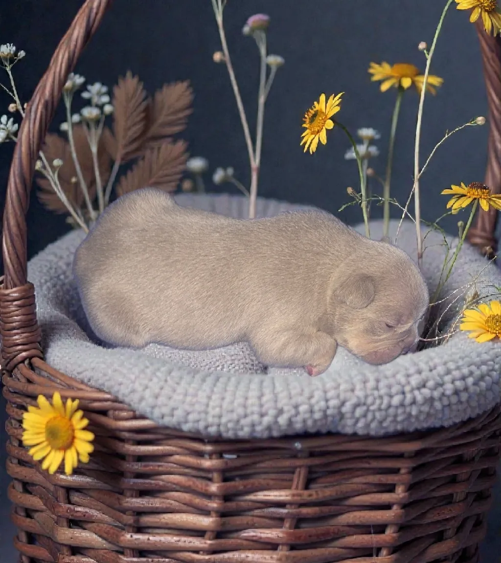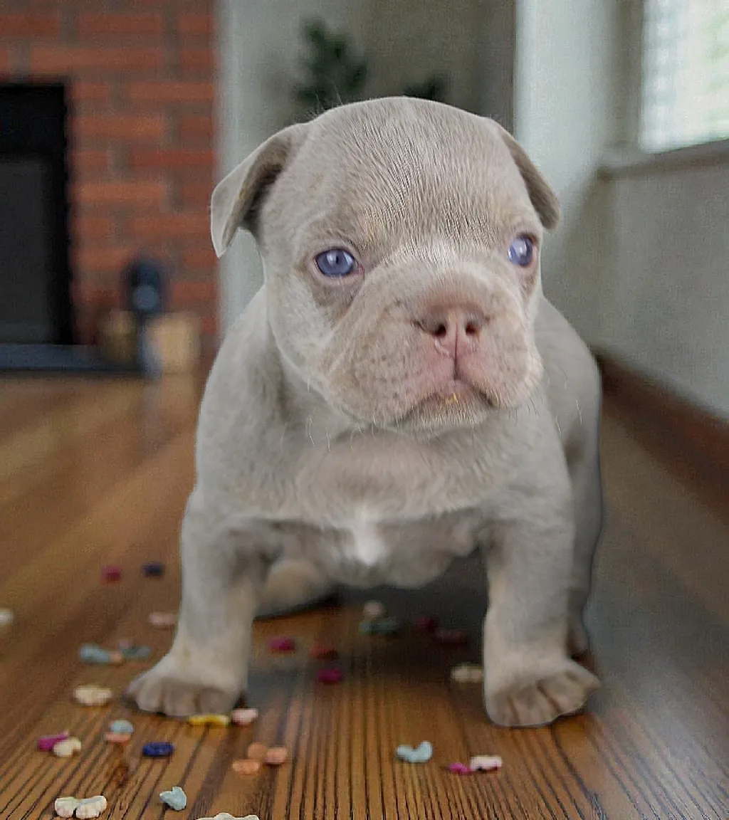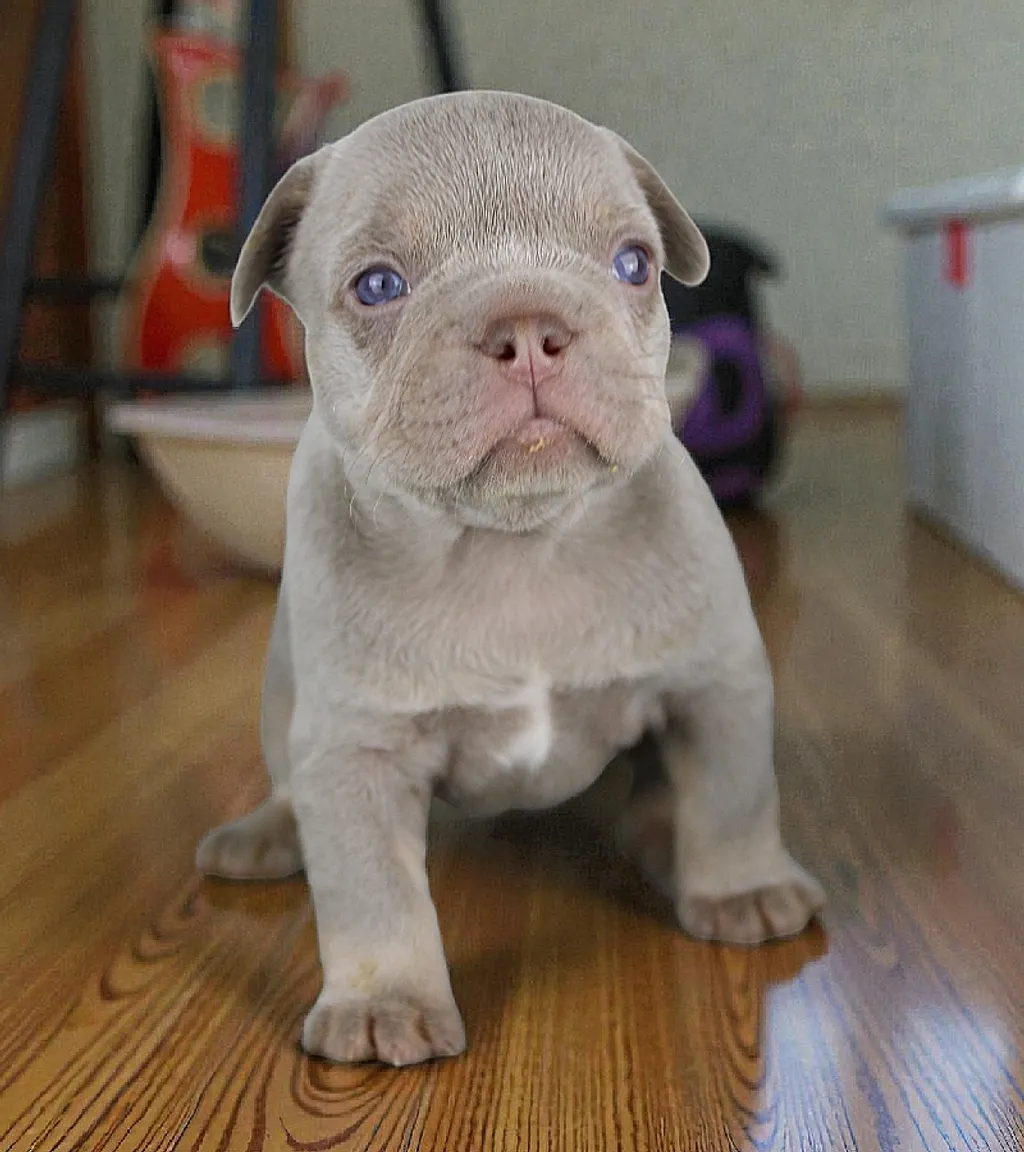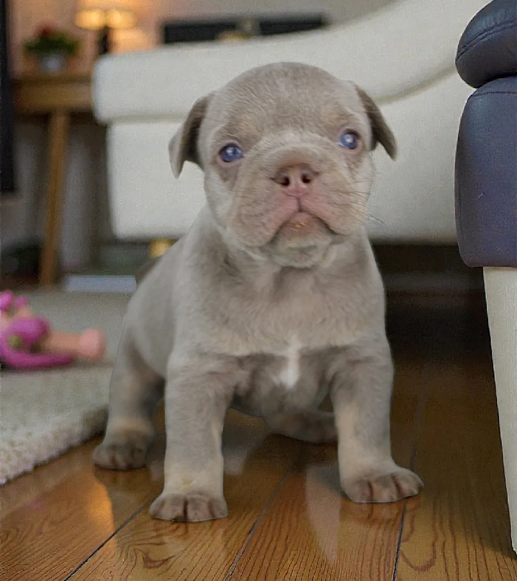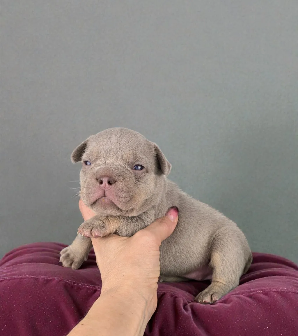 Description du chiot : Améa est une petite femelle Bouledogue Français exotique, de couleur Isabella Tan Newshade. Elle se distingue par une robe lumineuse au tan orangé marqué. Courte, compacte et bien construite, elle présente une morphologie harmonieuse et équilibrée. Son modèle de qualité reflète une sélection sérieuse et exigeante.