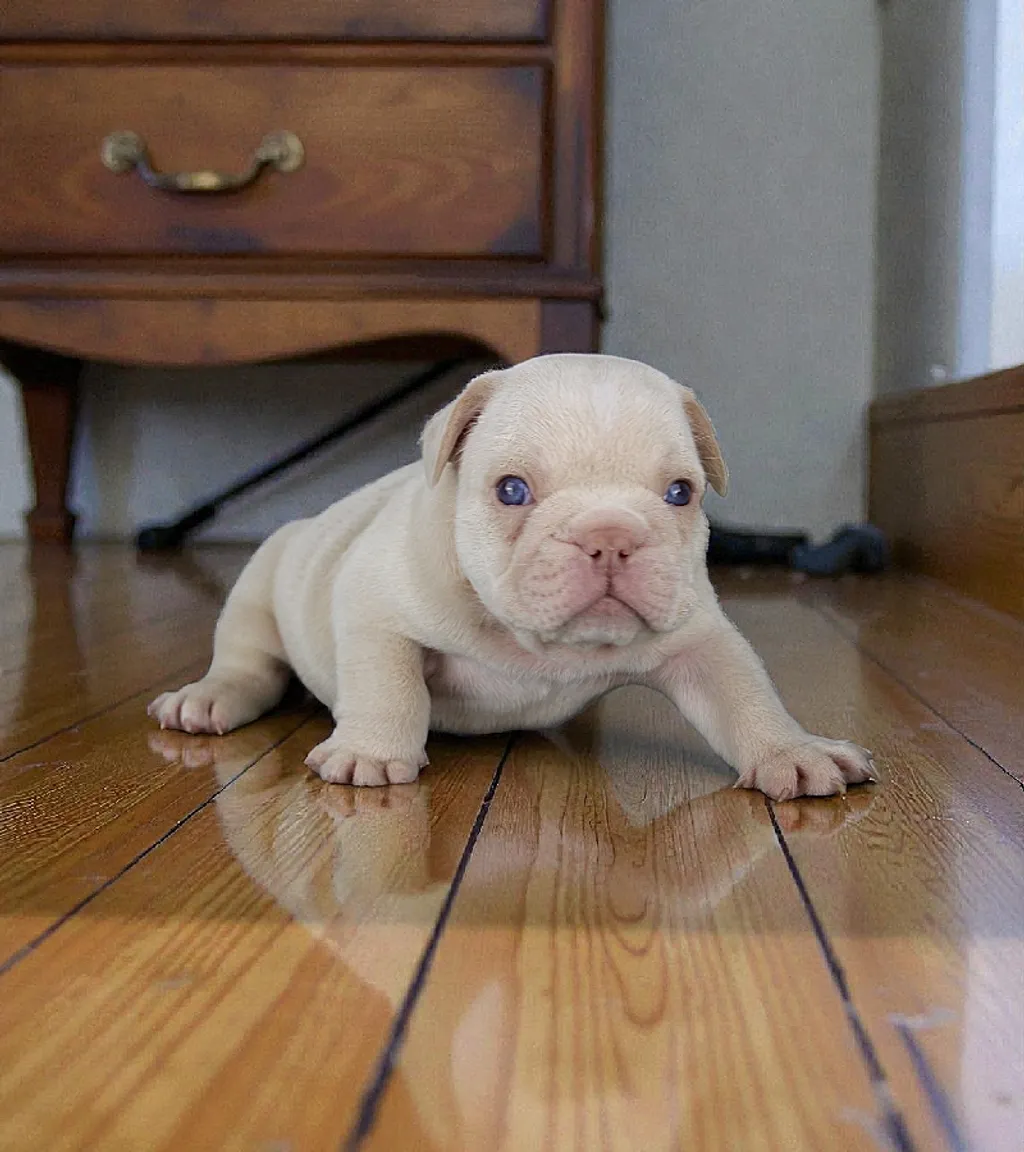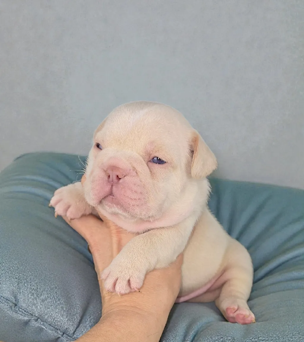 Description du chiot : Nox est un jeune mâle Bouledogue Français Exotique à la robe Isabella Tan Newshade Platinum. Il présente déjà une très belle morphologie, avec une ossature bien marquée et une structure harmonieuse. Son expression douce et équilibrée reflète un chiot plein de charme et de promesses, au caractère déjà attachant.