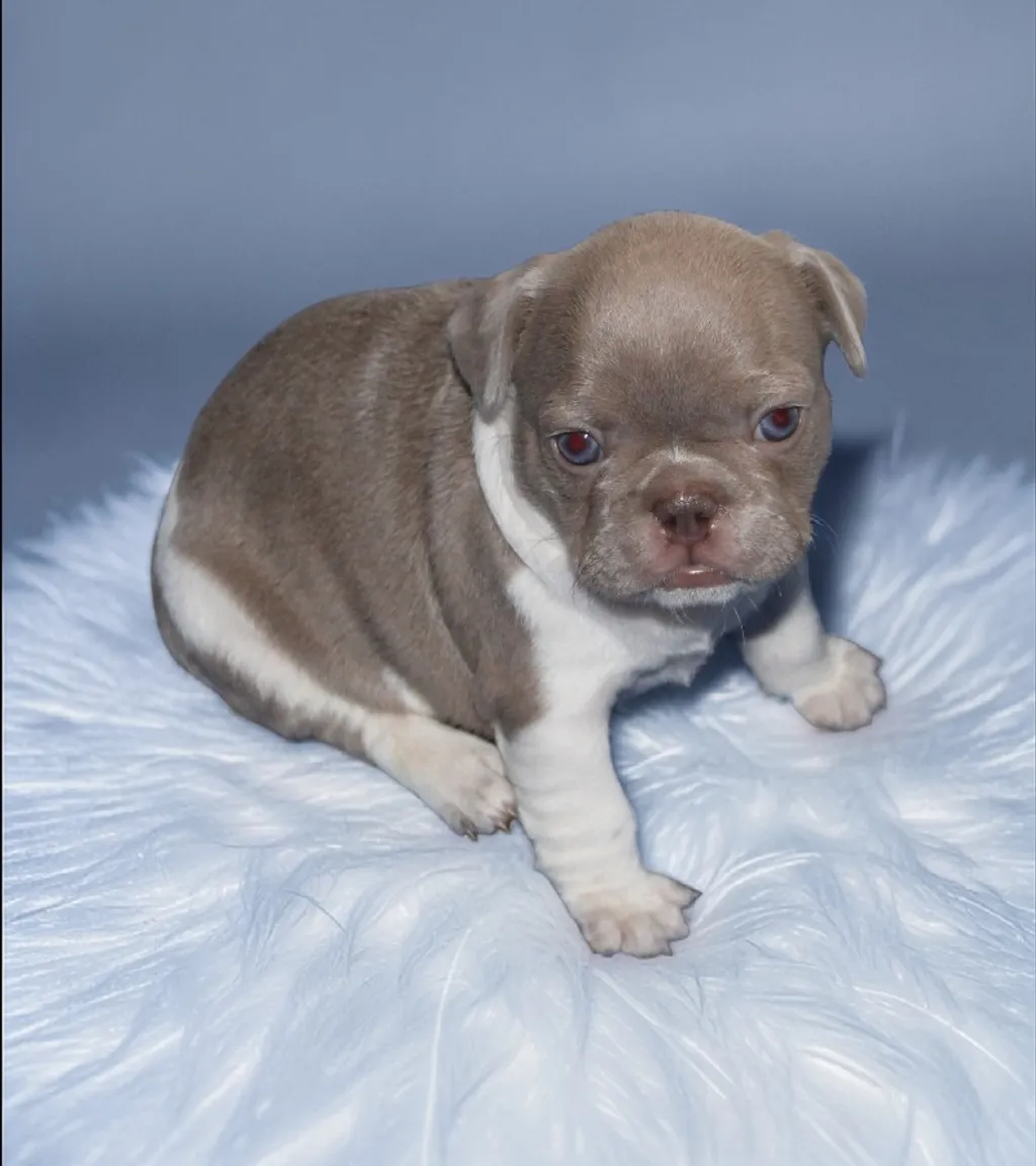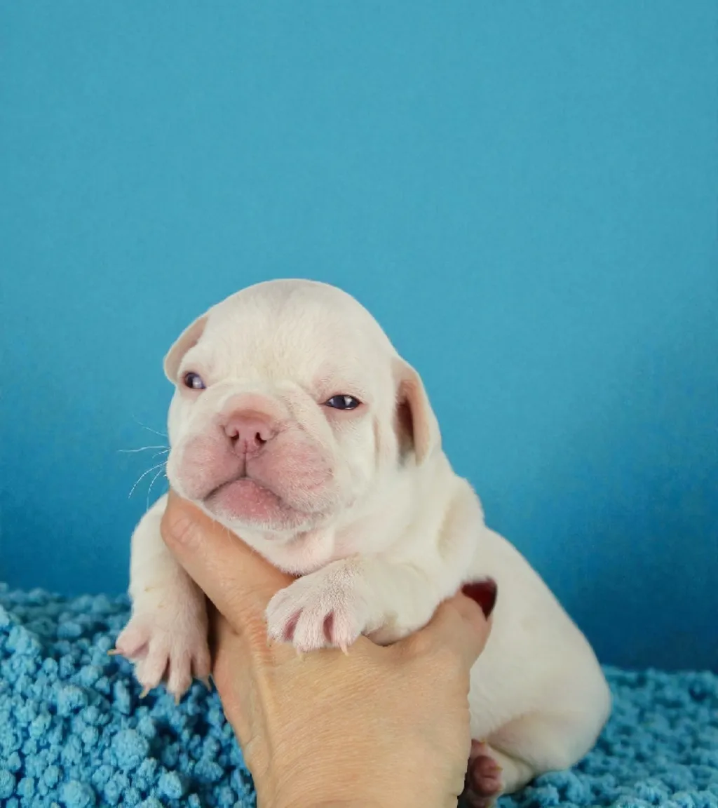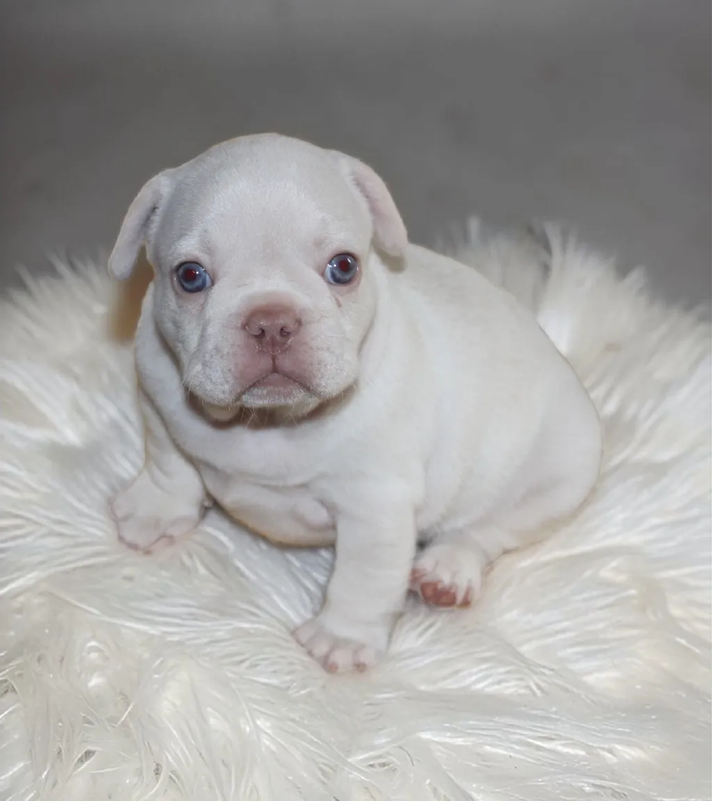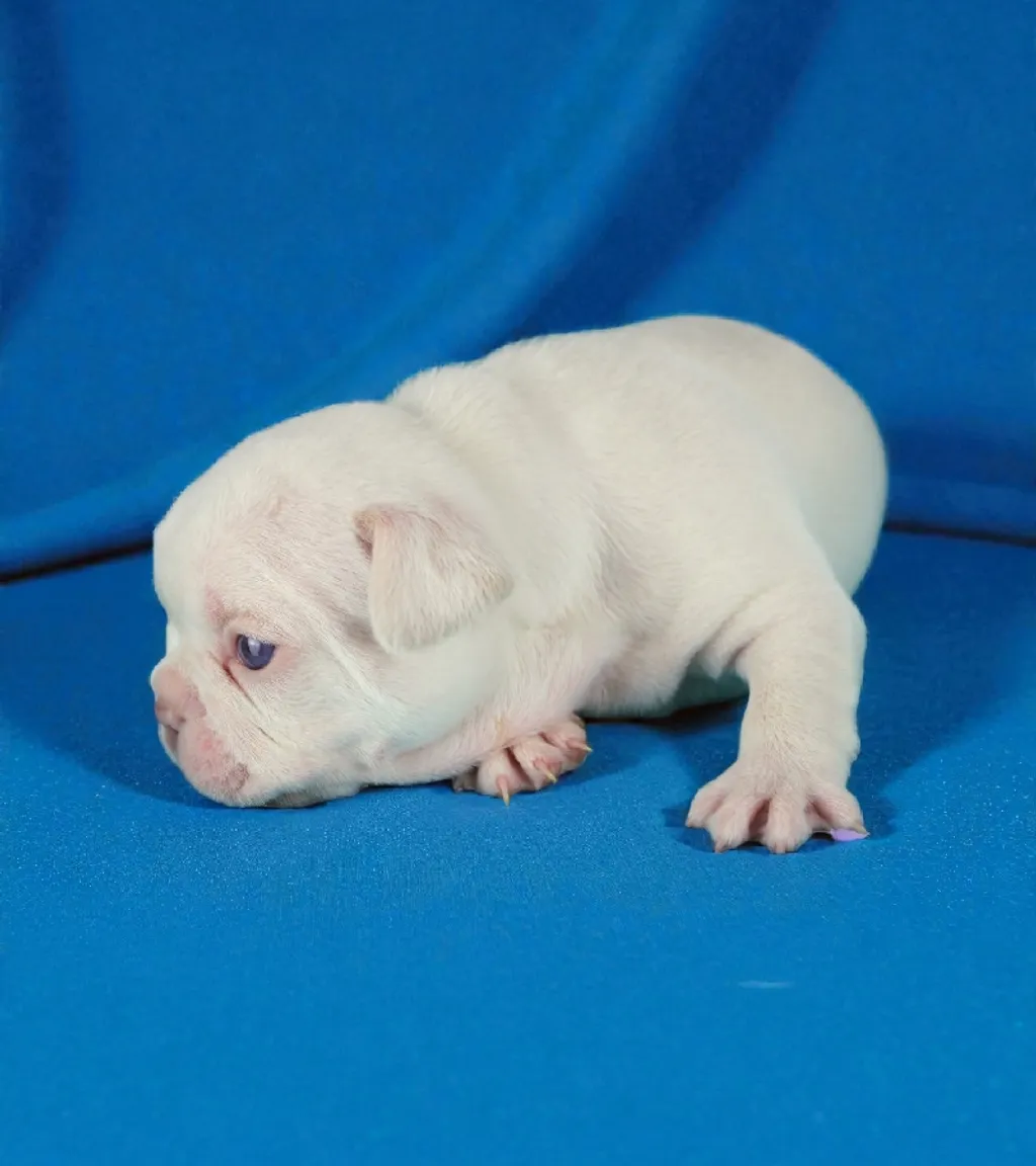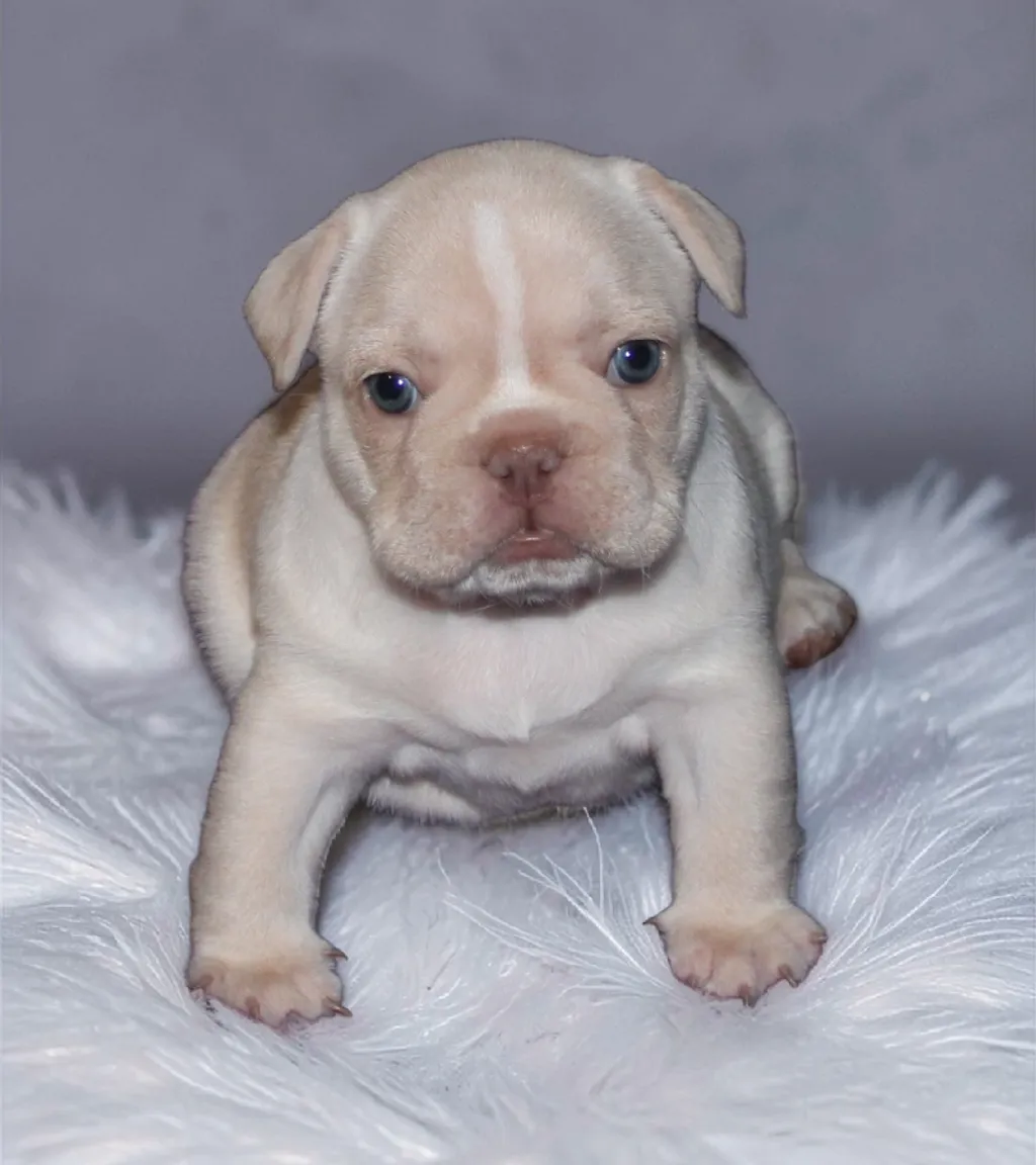 Description du chiot : Craquant petit mâle Boiuledogue Français Exotique, à la silhouette courte et bien équilibrée. Son corps compact, sa belle ossature et ses proportions harmonieuses en font un chiot très séduisant. Sa couleur Isabella Platinium offre une teinte crème raffinée et chaleureuse. Un compagnon idéal, doux et attachant, pour une vie de famille épanouie.