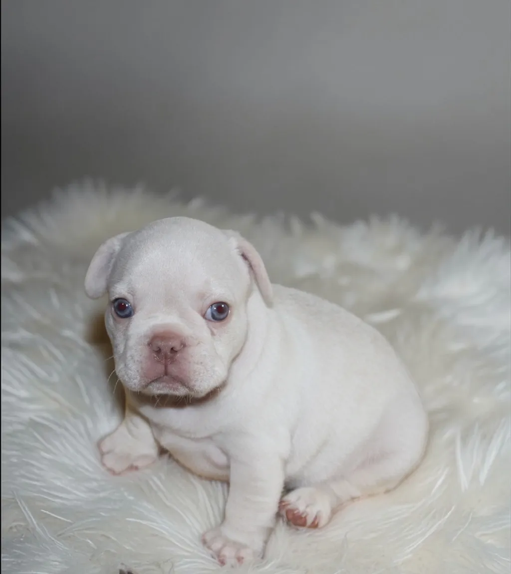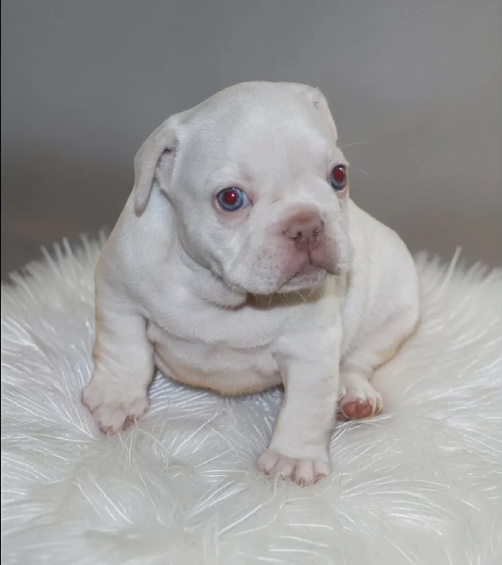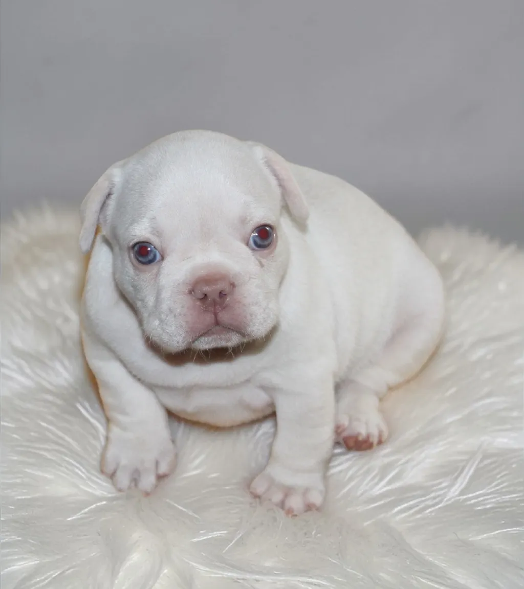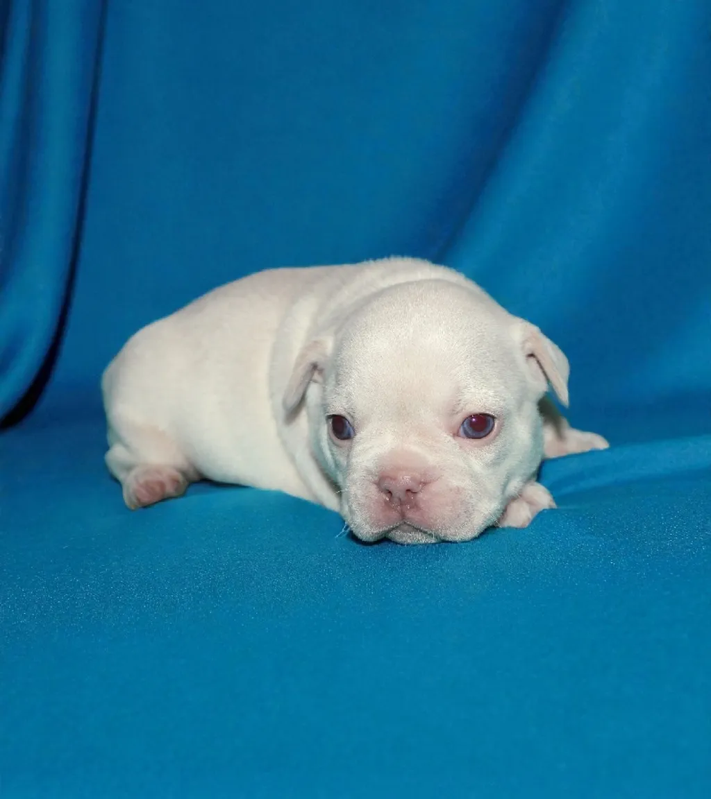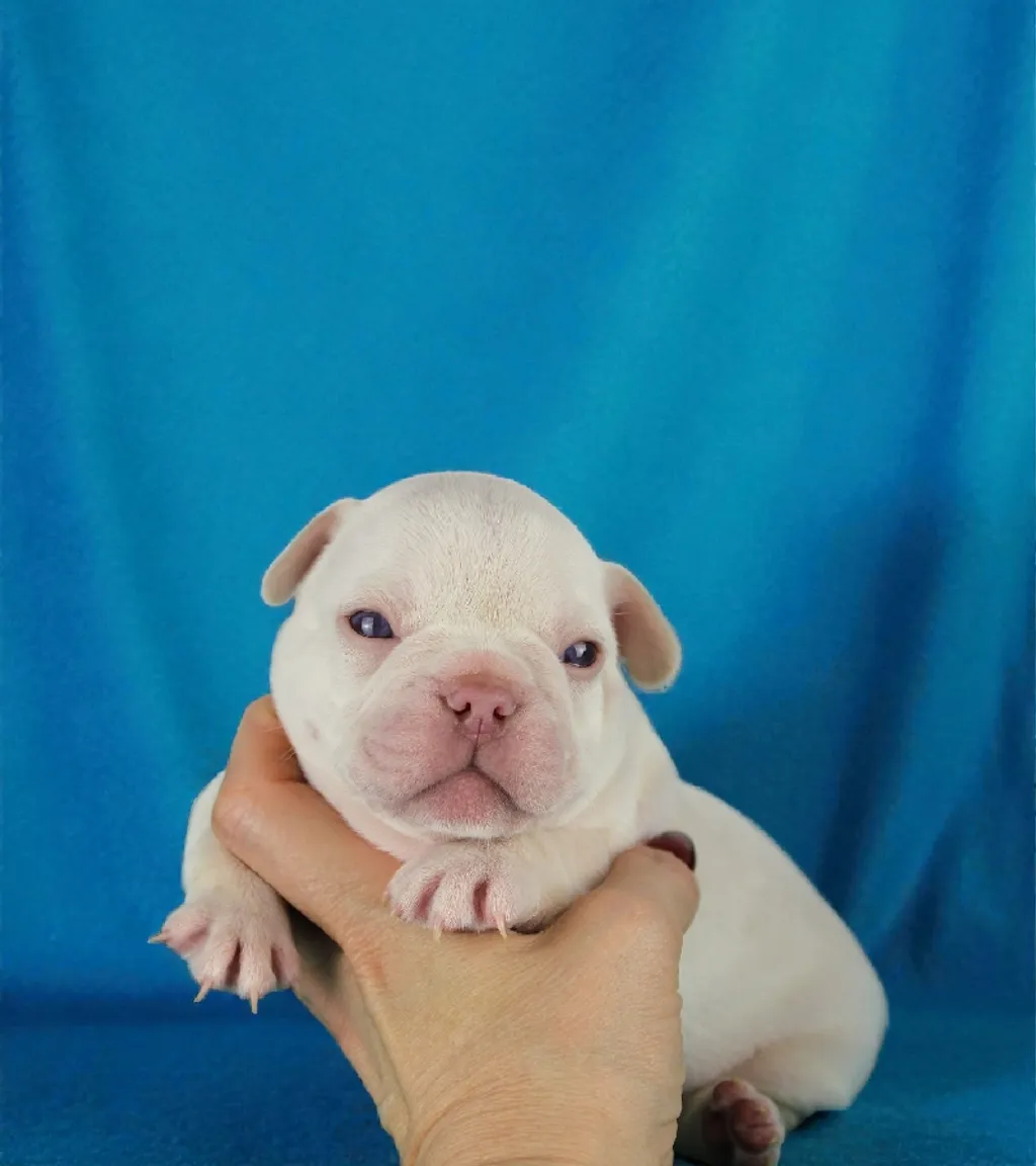 Description du chiot : Craquant petit mâle Boiuledogue Français Exotique, à la silhouette courte et bien équilibrée. Son corps compact, sa belle ossature et ses proportions harmonieuses en font un chiot très séduisant. Sa couleur Isabella Platinium offre une teinte crème raffinée et chaleureuse. Un compagnon idéal, doux et attachant, pour une vie de famille épanouie.