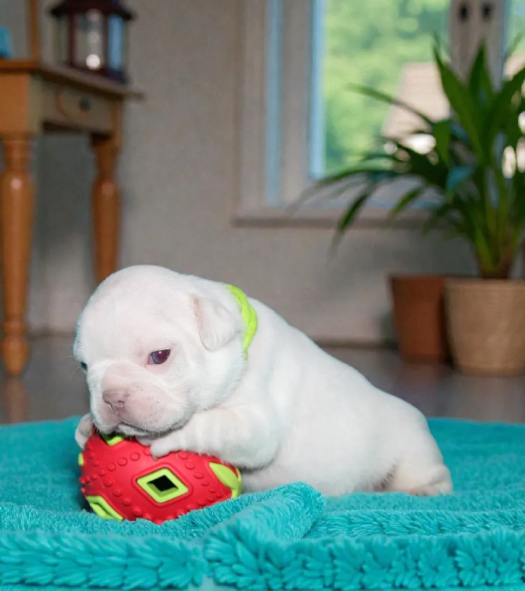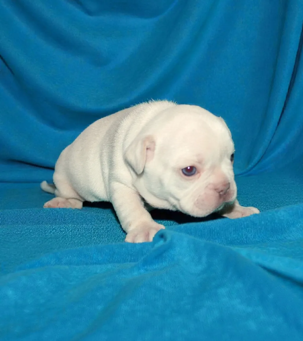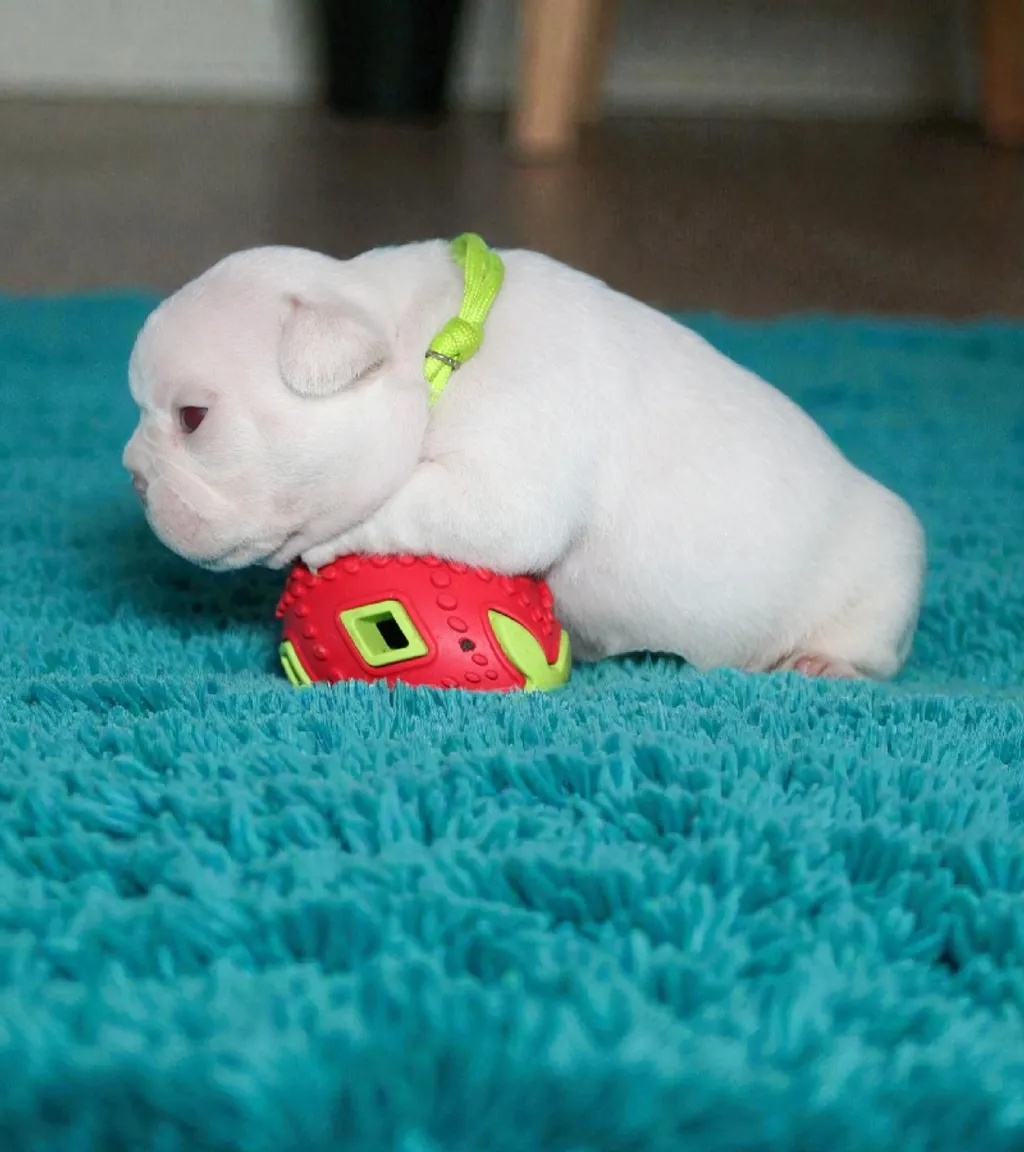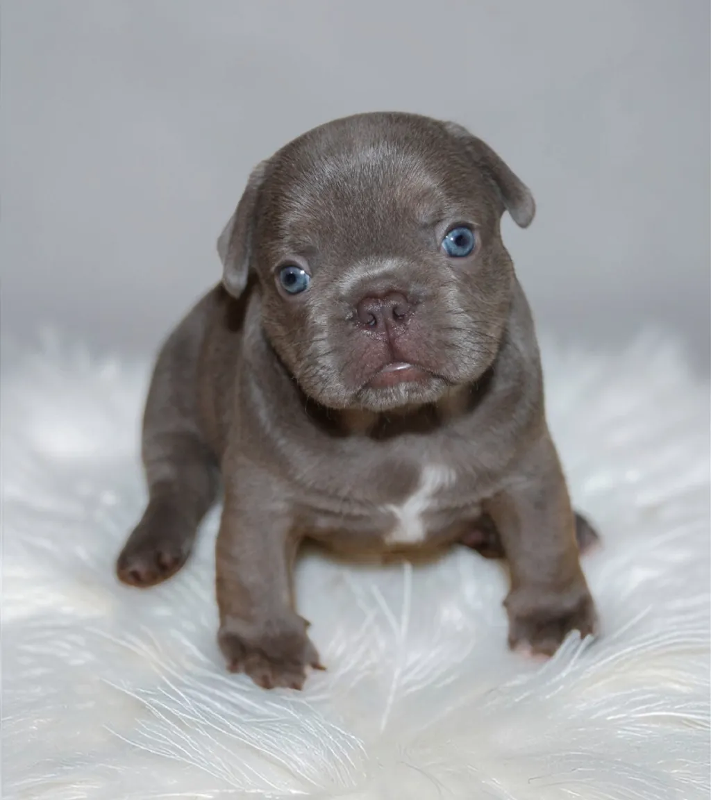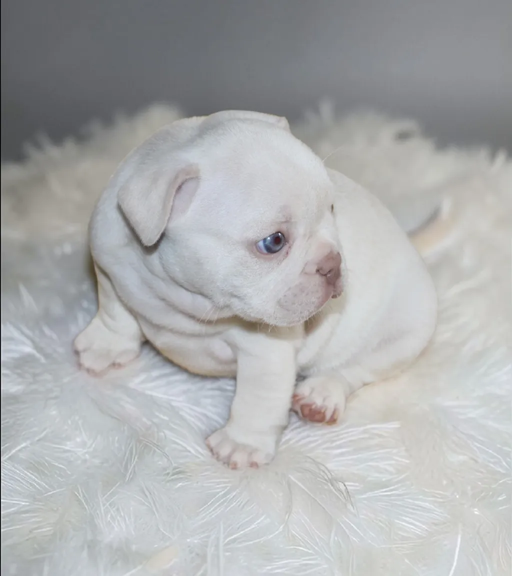 Description du chiot : Craquant petit mâle Boiuledogue Français Exotique, à la silhouette courte et bien équilibrée. Son corps compact, sa belle ossature et ses proportions harmonieuses en font un chiot très séduisant. Sa couleur Isabella Platinium offre une teinte crème raffinée et chaleureuse. Un compagnon idéal, doux et attachant, pour une vie de famille épanouie.