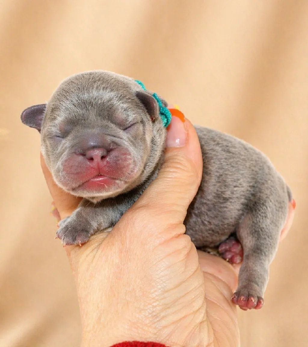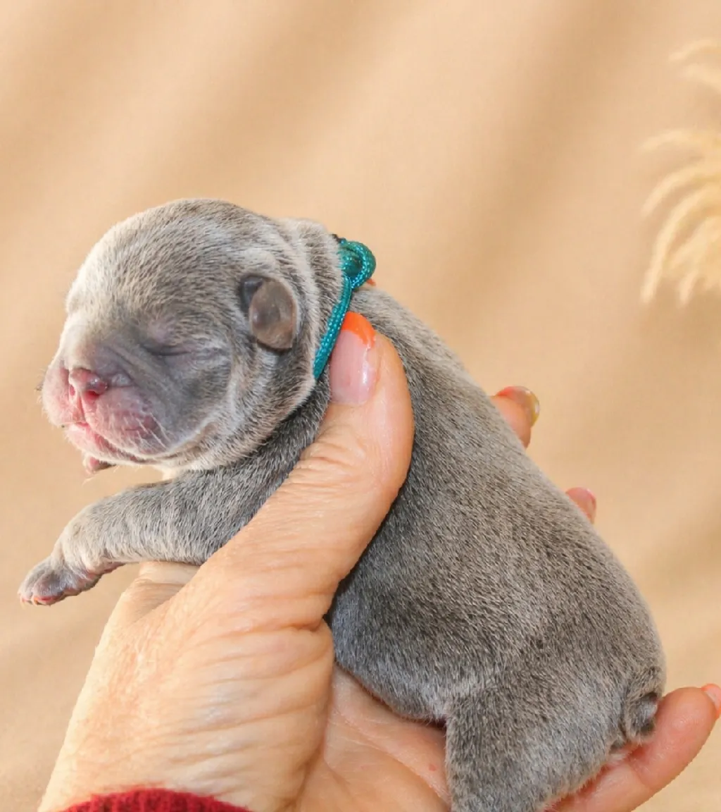 Description du chiot : Saphéa est une magnifique petite femelle Bleu Tan qui séduit par son élégance et son harmonie. De petit gabarit, elle présente une très belle corpulence, bien proportionnée, avec une ossature solide et une construction équilibrée. Sa tête expressive, typique de la race, ainsi que son allure générale reflètent qualité et prestance. Une chienne pleine de charme et très prometteuse.