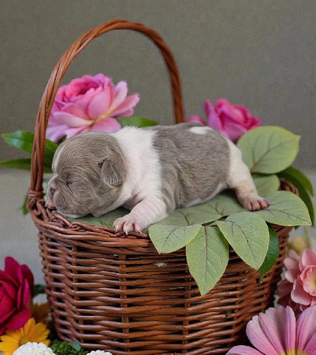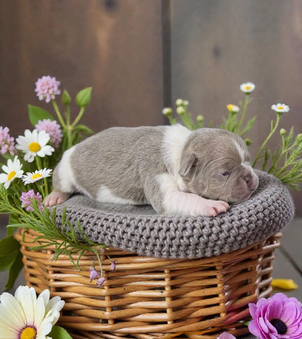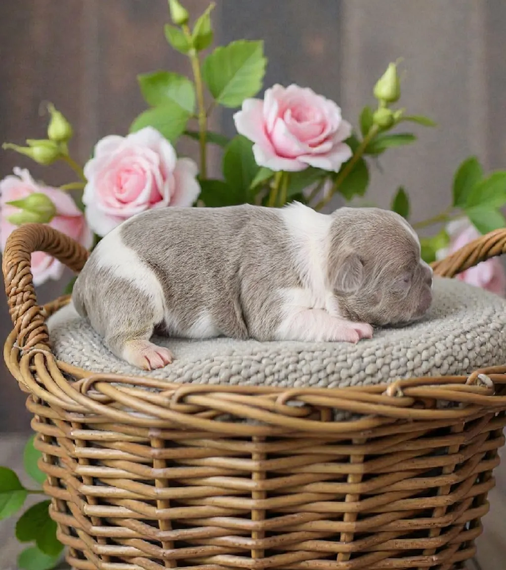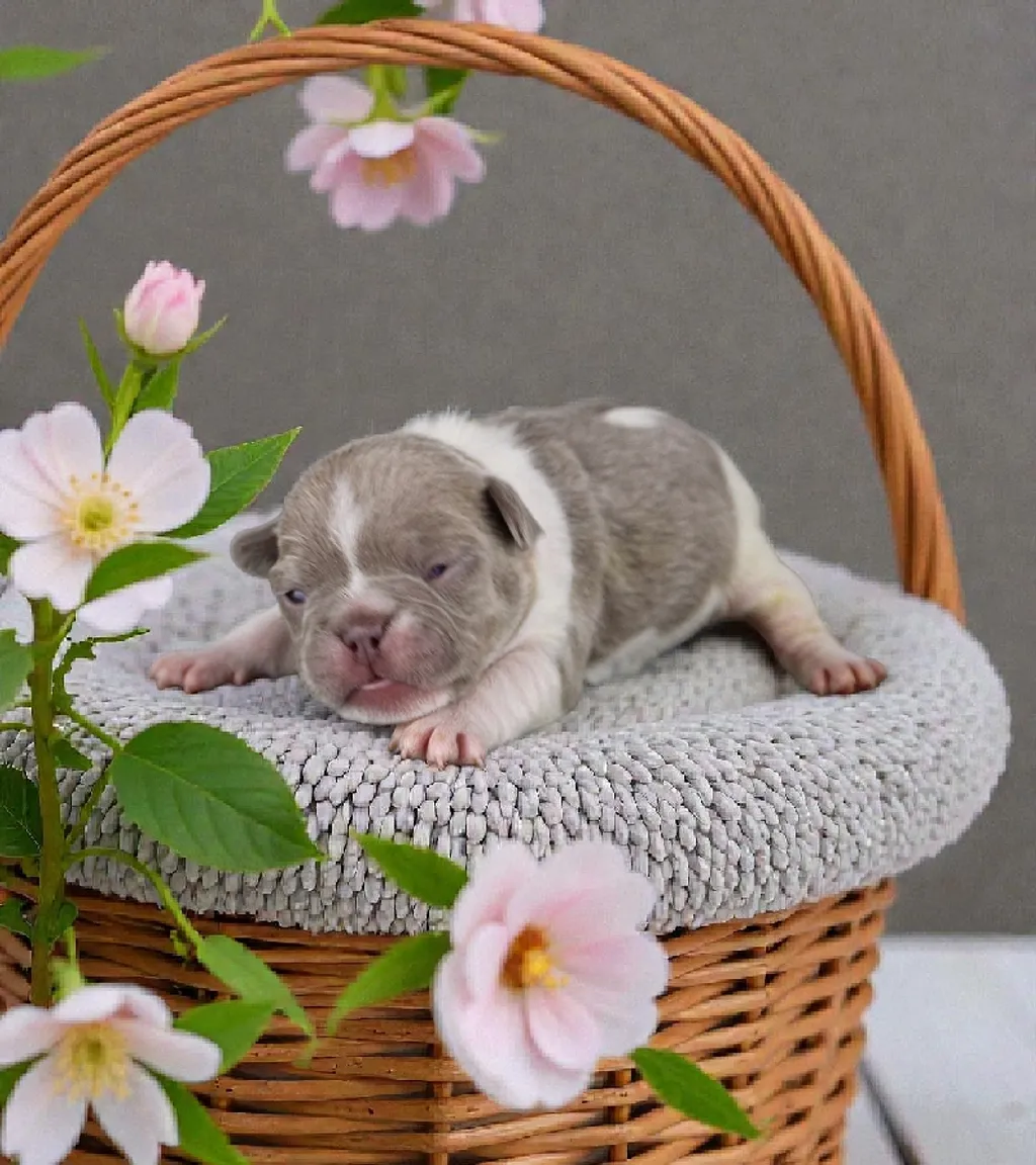 Description du chiot : Adorable petite femelle Bouledogue Français Exotique, à la superbe couleur Isabella Caille New Shade, originale et élégante. Elle possède un format compact, une jolie morphologie et une ossature harmonieuse. Bien proportionnée et pleine de douceur, c’est une petite chienne idéale pour une vie de compagnie, proche et affectueuse.